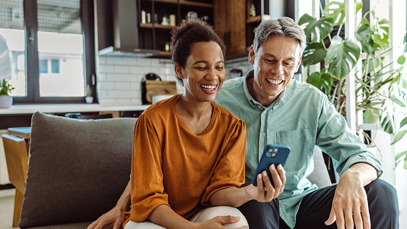 smiling couple on couch smiling couple on couch
