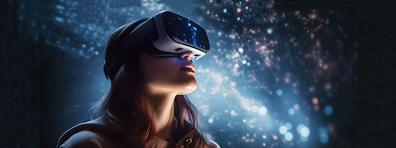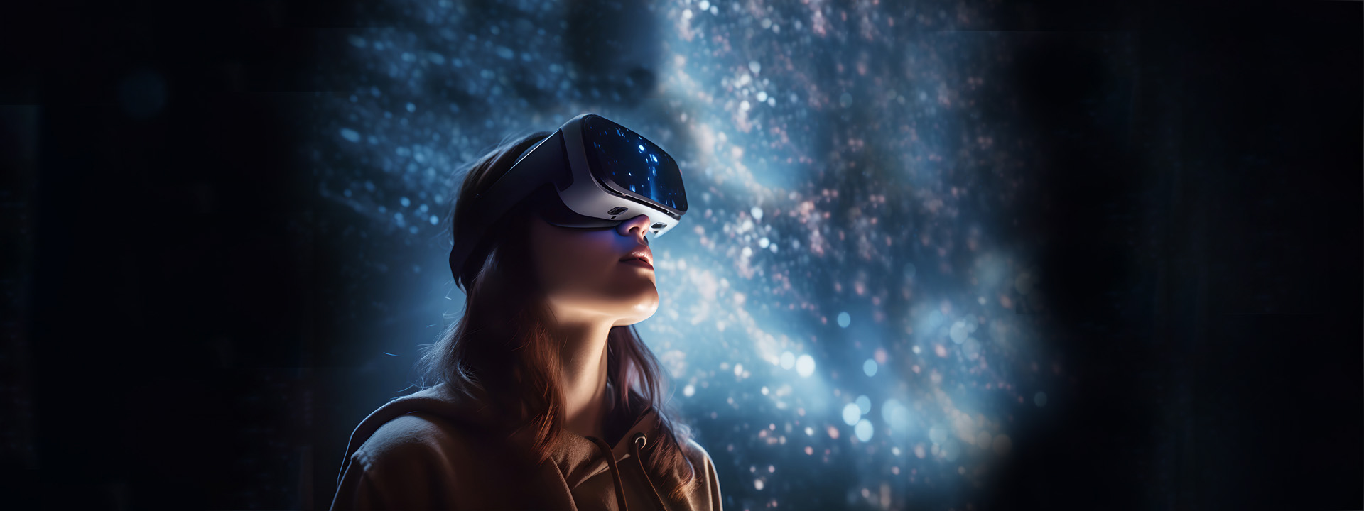 Mujer con máscara de realidad virtual Mujer utilizando realidad virtual